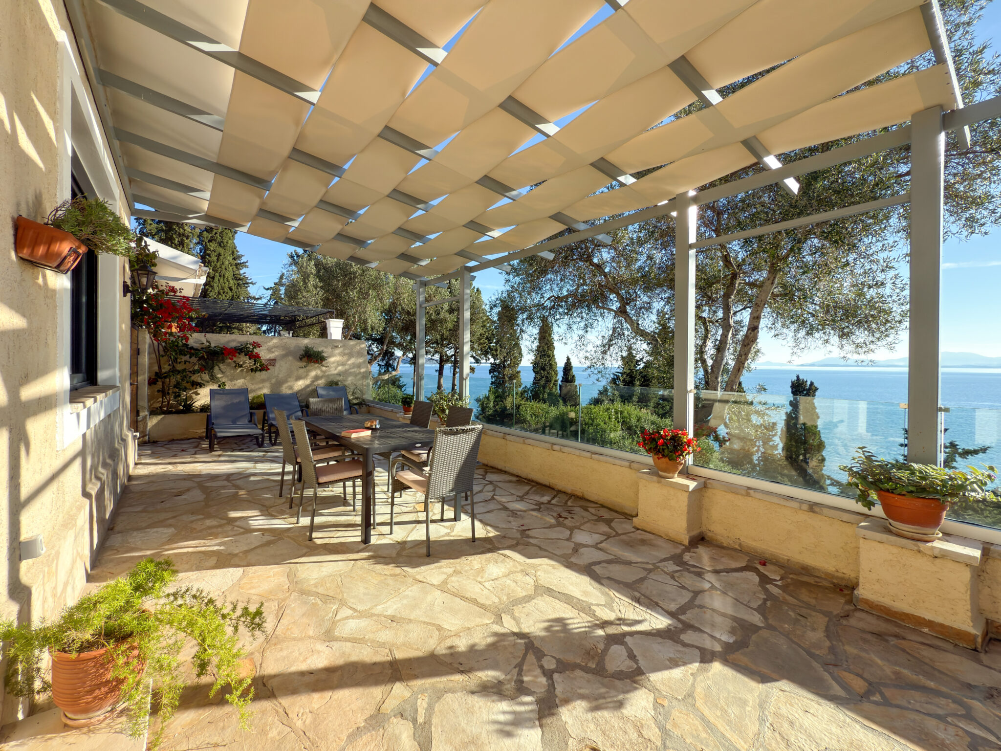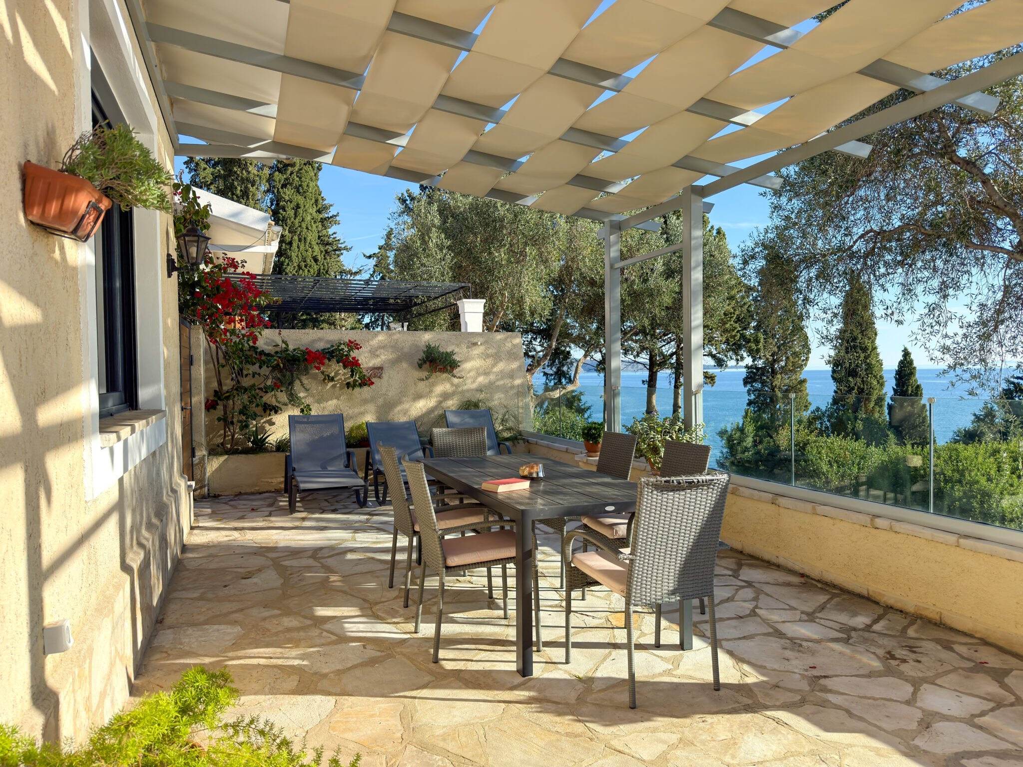 It is a discreet seafront home offering rare private access to the Ionian Sea, uninterrupted views and a calm, understated atmosphere in one of Corfu’s most desirable coastal settings.