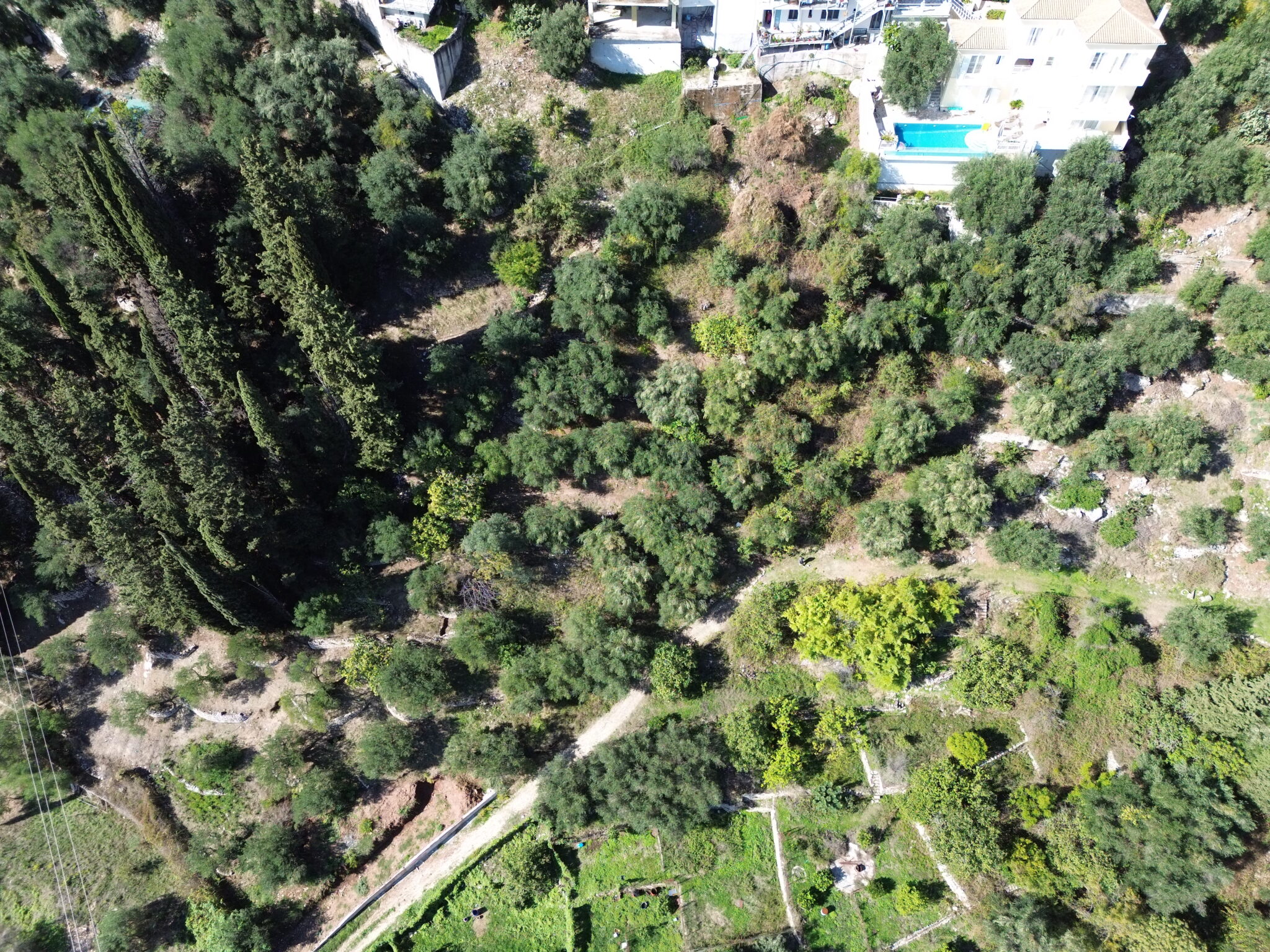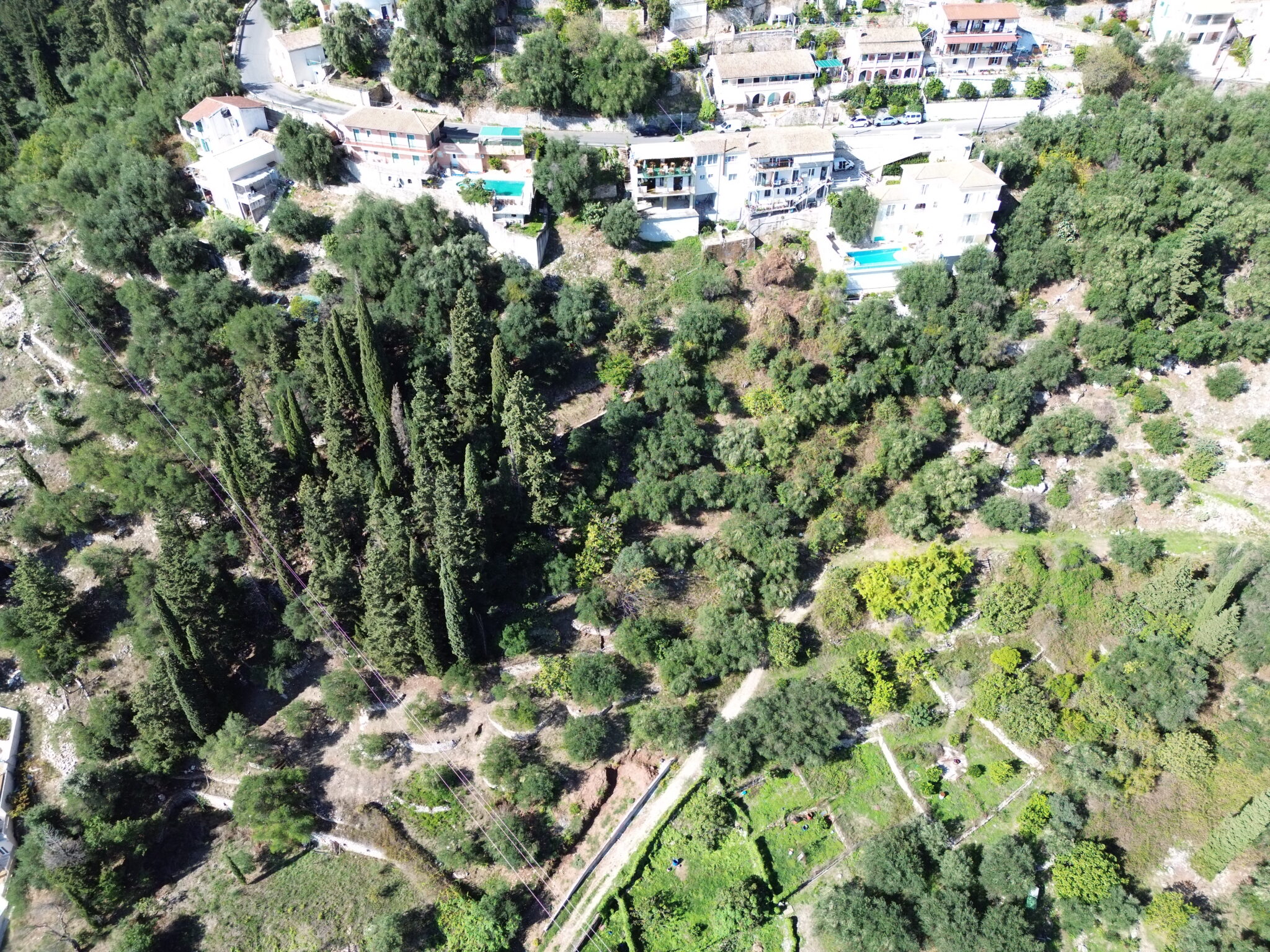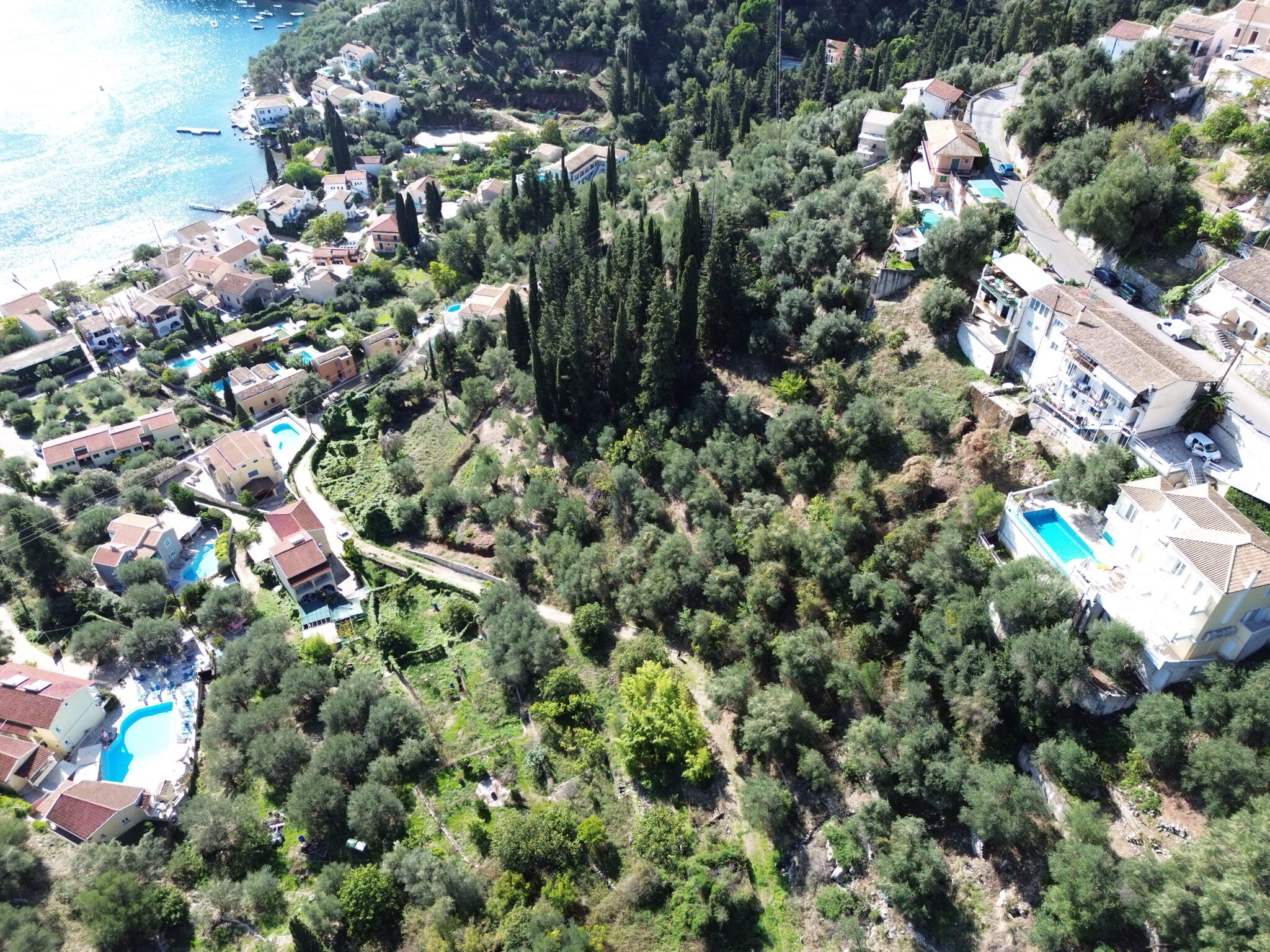 Surrounded by mature olive and cypress trees, the land sits in a peaceful, natural environment while remaining close to Kalami’s shoreline, home to waterfront dining, boat moorings and the historic White House, once the residence of Lawrence Durrell.